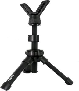 I like to begin at 15 yards with a rifle or handgun, using a table to shoot from, with a stand or rest for support (see photo below), a rest like this works for handguns or rifles and helps to remove most of the other movements so you can see exactly where your handgun is shooting.