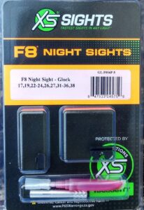 There are many types of sights being made today, but what type of sights work well on a self Defense (SD) handgun? I love my Glock handguns but the one thing I do not like are the plastic sights. So that is one of my first upgrades that I want to change.  I really like the XS Sight Company as I feel they have very high quality sights at a somewhat reasonable price. I was looking on Amazon a while back and found a new style of XS Night Sights that I thought might just work for me and besides they were at a very reasonable introductory price. So I thought I would give them a try. I bought three for my Glocks, my Glock 19, 30 and 20. Most of my discussion will be about my Glock 19 (9mm), so let’s talk about it.